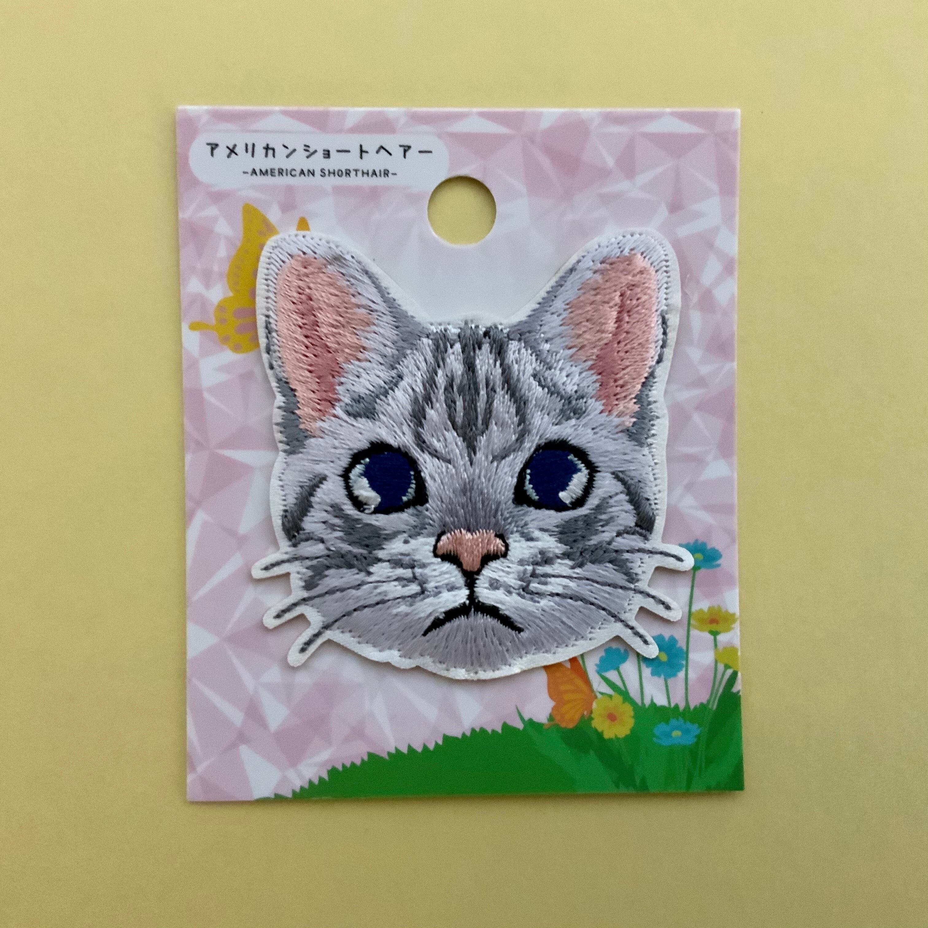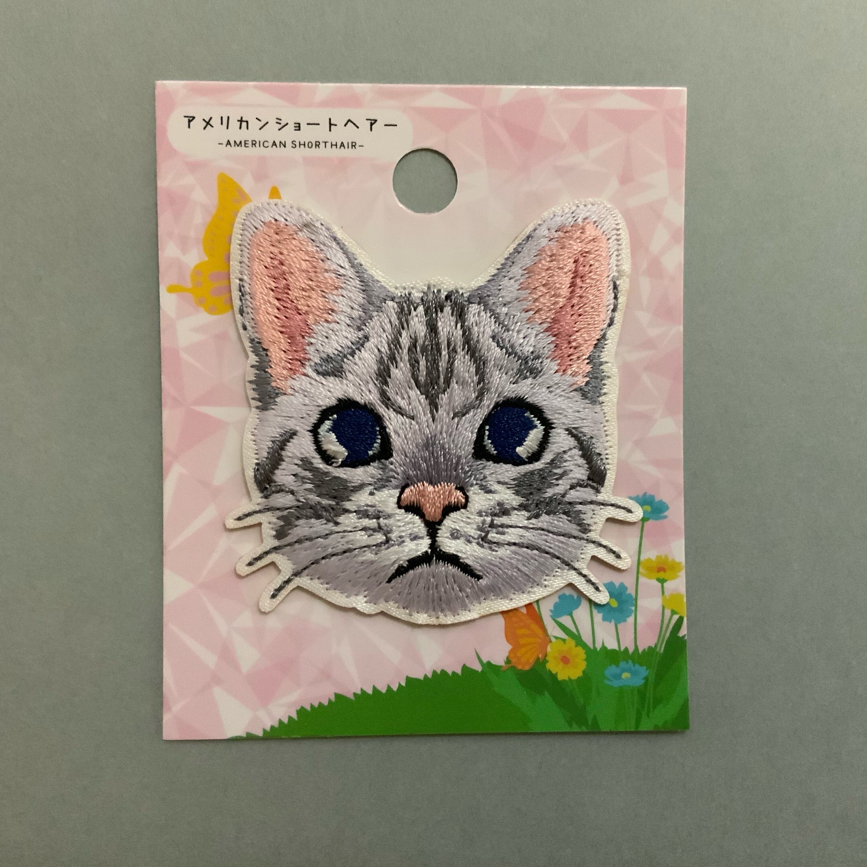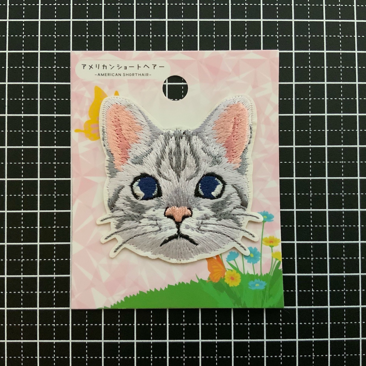 愛嬌のある表情のアメリカンショートヘアーのワッペンステッカー。ネコシリーズ。