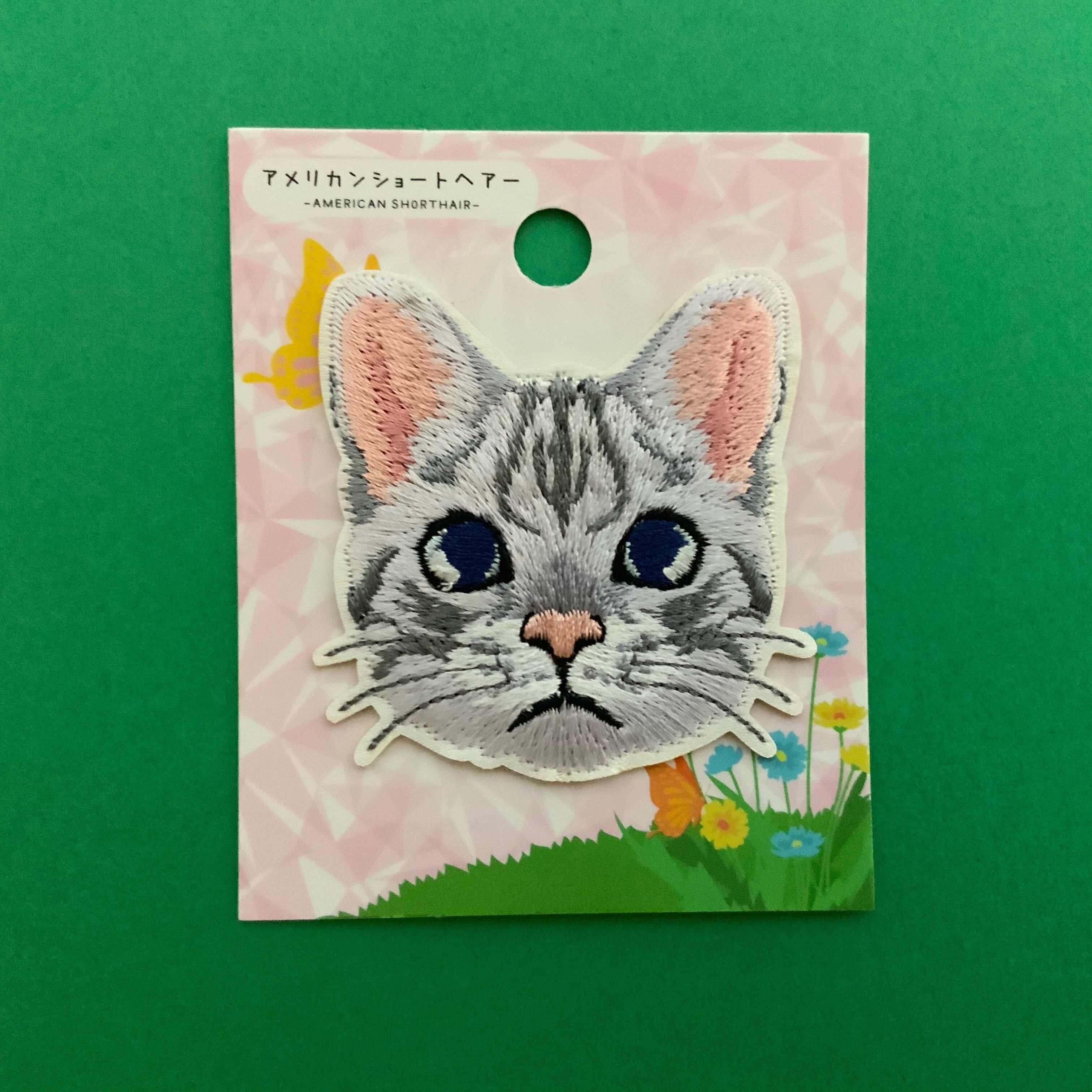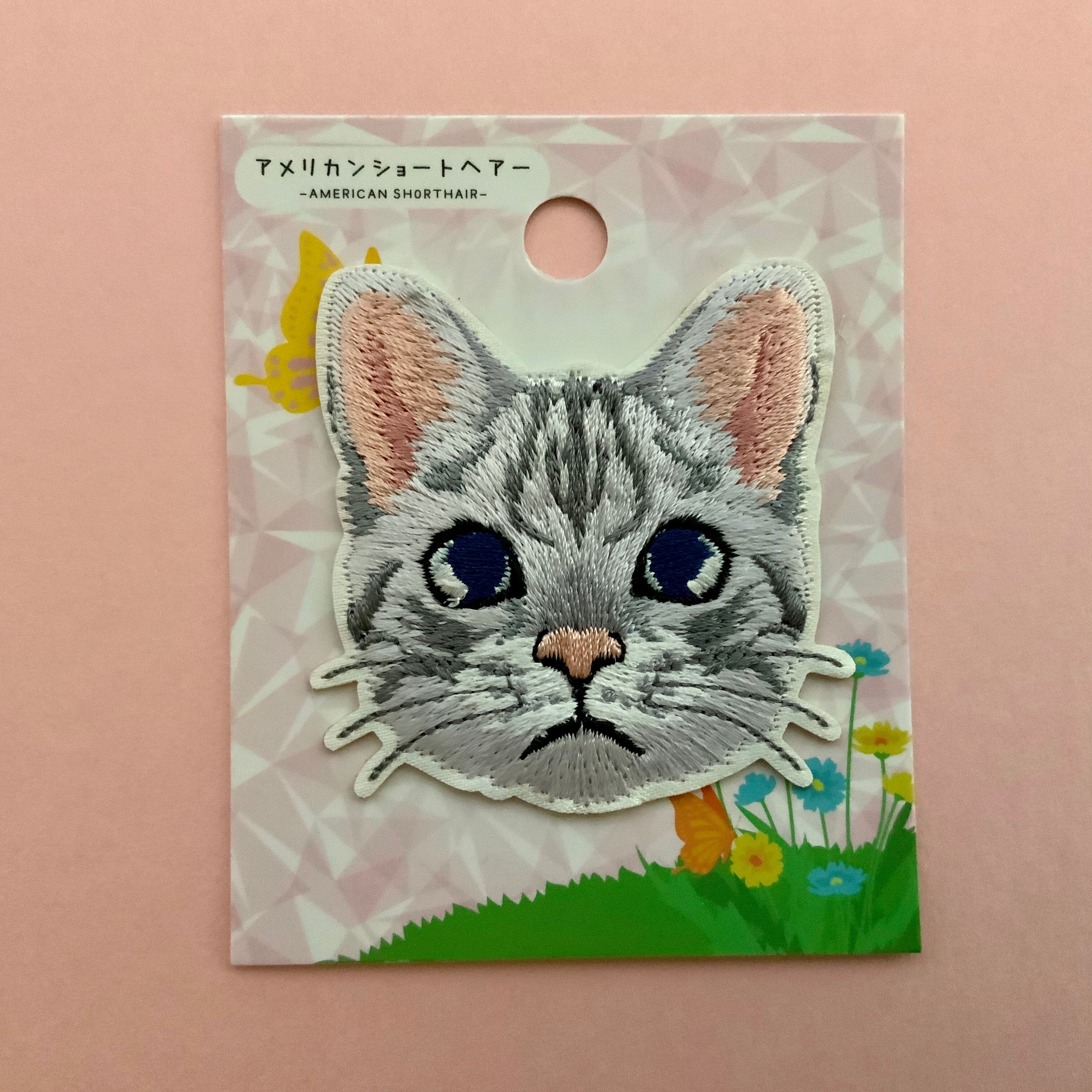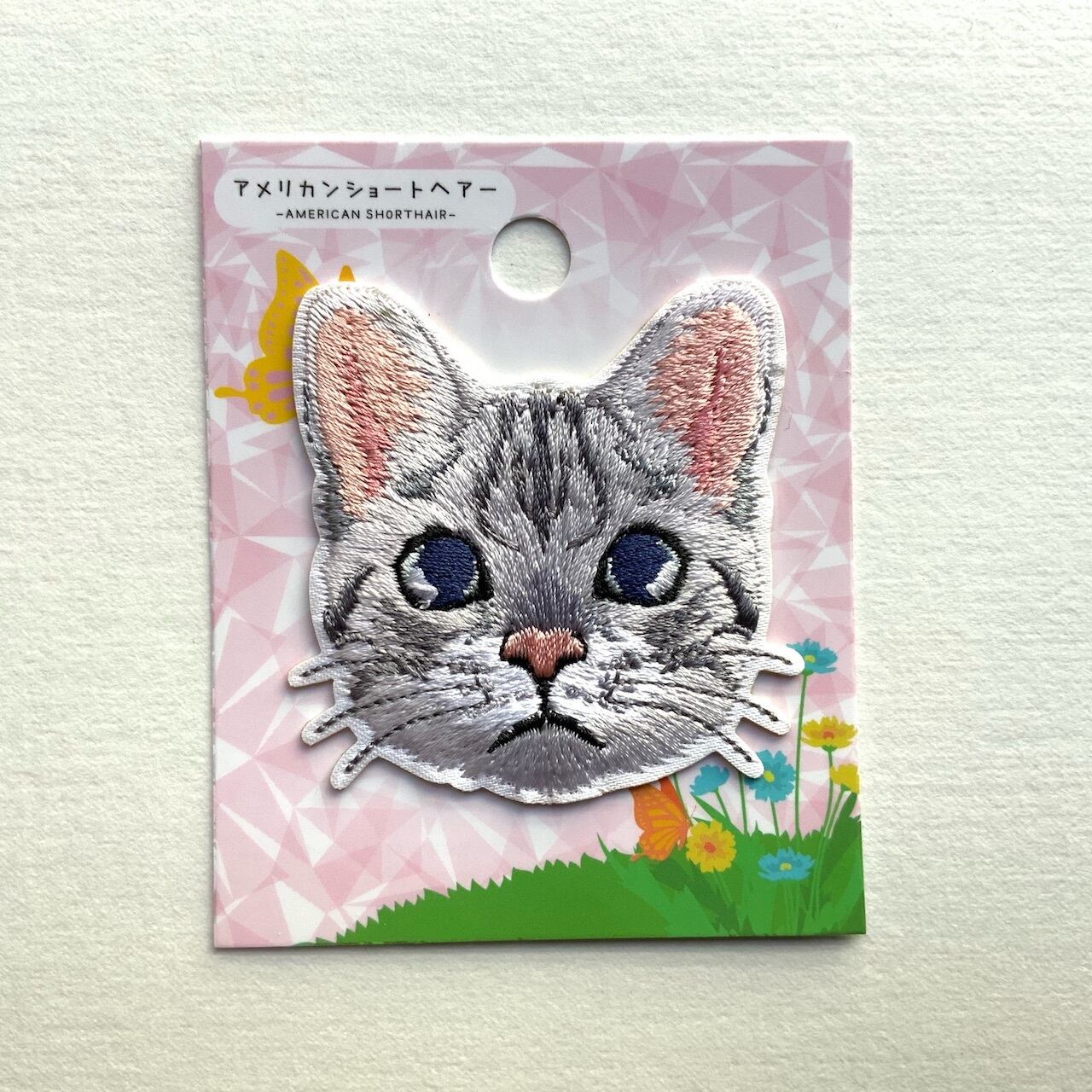 愛嬌のある表情のアメリカンショートヘアーのワッペンステッカー。ネコシリーズ。